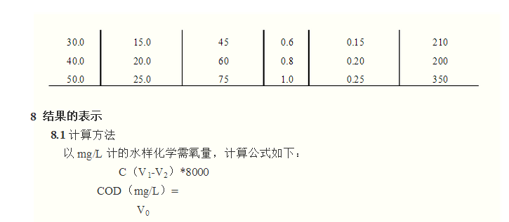 本標準適用于各種類型的含COD值大于30mg/L的水樣,對未經(jīng)稀釋的水樣的測定上限為700 mg/L。超過水樣稀釋測定。