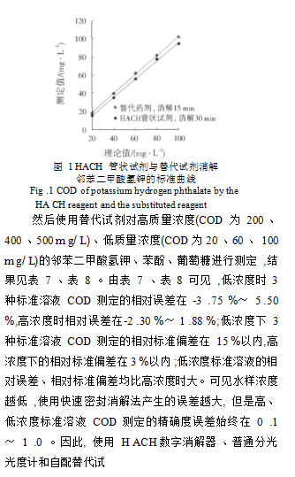 [ 6-9] 。筆者對用于 COD 測定的 H ACH 管狀試劑進(jìn)行替代品的開發(fā) ,同時利用普通分光光度計替代 H ACH 配套分光光度計 ,以便于低耗環(huán)保的 COD 測定方法的推廣。