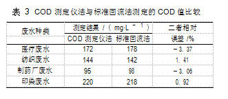 COD 測(cè)定儀法具有較好的精密度和準(zhǔn)確度,且與標(biāo)準(zhǔn)回流法的測(cè)定結(jié)果的相對(duì)誤差較小,具有