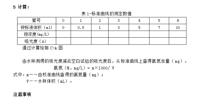 4.空白試驗(yàn):以無(wú)氨水代替水樣,作全程序空白測(cè)定。