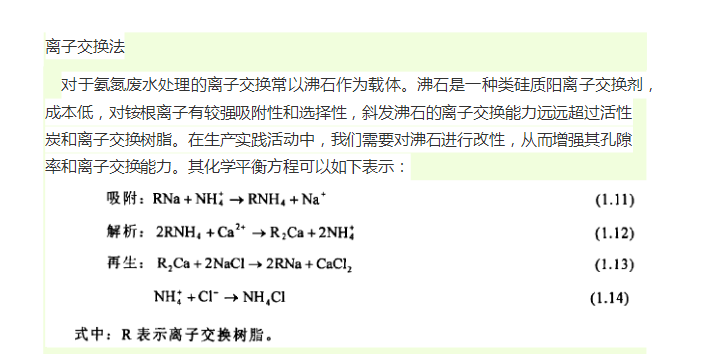 PH值對沸石的吸附有一定的影響,pH=4一8是沸石離子交換的**佳范圍。當(dāng) pH<4 時,H+與 NH4+發(fā)生競爭;pH>8 時,NH4+變?yōu)?NH3,而失去離子交換性能。常用的離子交換系統(tǒng)有移動床、混合床、固定床三種類型。離子交換法適用于中低濃度的氨氮廢水處理,在處理高濃度的氨氮廢水時,會因樹脂再生頻繁而造成操作困難。其再生液為高濃度氨氮廢水,需做進(jìn)一步處理。