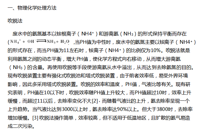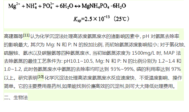 此方法氨氮處理效率較高(廢水經(jīng)處理后可達(dá)飲用水的標(biāo)準(zhǔn))、工藝流程簡單、占地面積少等特點(diǎn)。但此技術(shù)所需催化劑價格昂貴,且需要高溫和高壓的設(shè)備,暫時不能作為廣泛應(yīng)用的處理方法,但若處理好催化劑與廢水匹配問題,應(yīng)用前景廣泛。 化學(xué)沉淀法