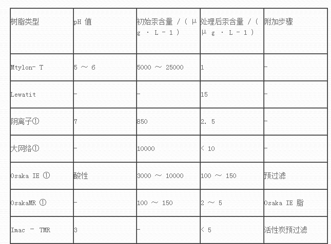 當(dāng)廢水中氯化物濃度不高時 ,采用陽離子交換樹脂是有效的。含巰基(R – SH) 的樹脂如聚硫苯乙烯對汞離子的吸附有很高的選擇性。硫羥樹脂在歐洲被廣泛應(yīng)用于汞正離子的去除。其他高親和力的陽離子樹脂有異硫脲鎓樹脂和甲胺酸酯型樹脂。據(jù)報道異硫脲鎓樹脂對無機(jī)汞和甲基汞都有效 ,而甲胺酸酯型樹脂對汞有極高的親和力和選擇性。不管是用來去除汞氯絡(luò)合物的陰離子樹脂 ,還是用來去除汞離子的陽離子樹脂 ,它們處理無機(jī)汞的**低出水含量為 1~5μg/L。在中性或微酸性 pH值時采用二級處理可獲得**有效的結(jié)果。