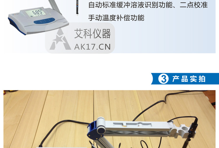2.自動(dòng)標(biāo)準(zhǔn)緩沖溶液識(shí)別功能、二點(diǎn)校準(zhǔn)