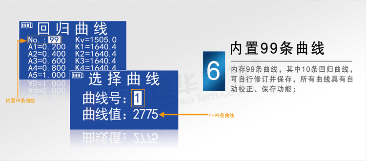 (05) 曲線:99條、10條回歸曲線,所有曲線具有自 動(dòng)校正并保存功能